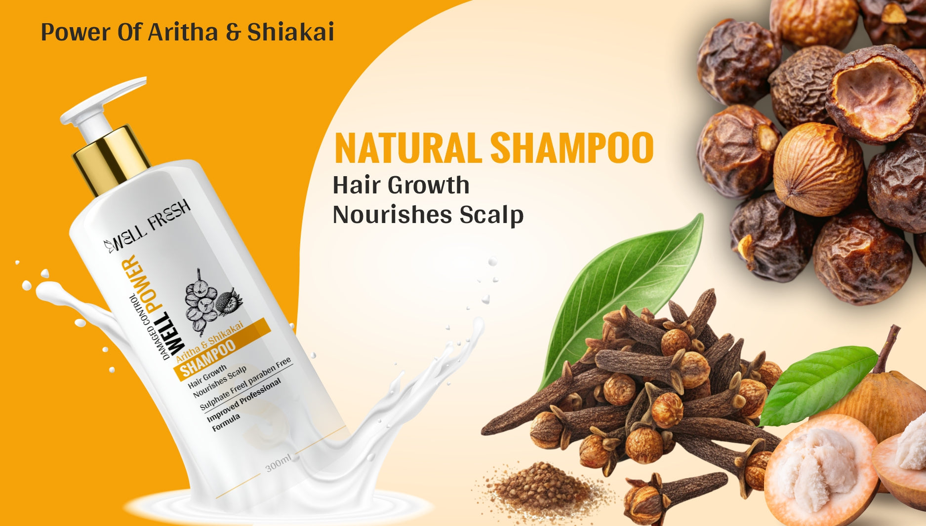 WELL POWER Aritha & Shikakai Shampoo – 300ml