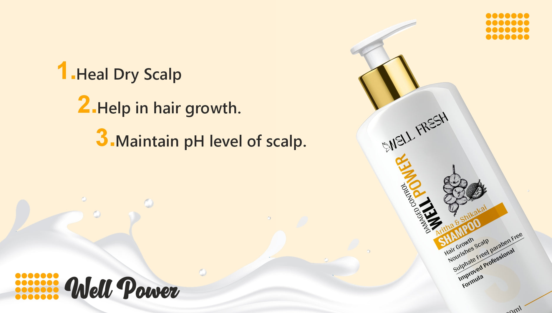 Unlock the power of traditional herbal care with WELL POWER Aritha & Shikakai Shampoo — a nourishing formula crafted to strengthen damaged hair, promote healthy growth, and deeply cleanse the scalp.